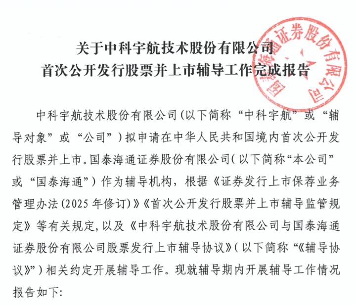 目前,商业航天领域科创板IPO进程最快的企业为蓝箭航天。该公司于2025年7月底完成辅导备案,同年12月底通过辅导验收,且已获上交所受理。中科宇航成为继蓝箭航天后,IPO走得最快的商业航天企业。去年8月12日,中科宇航在广东证监局办理辅导备案登记,拟申请首次公开发行股票并上市,辅导机构为国泰海通证券。